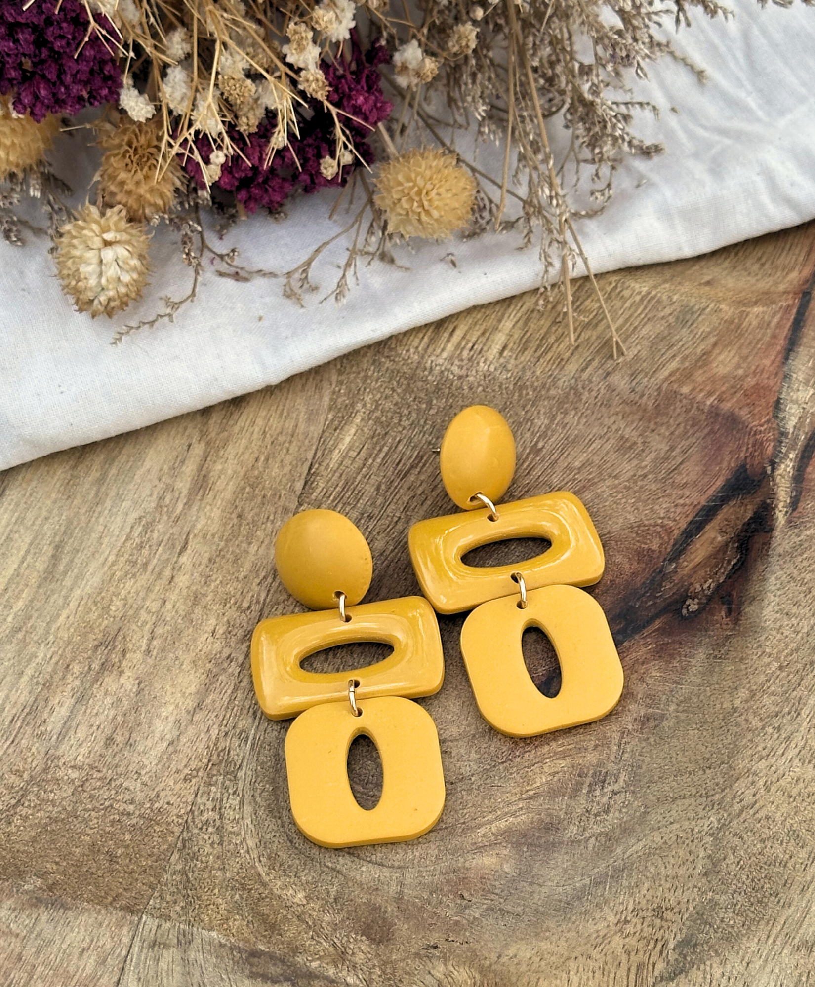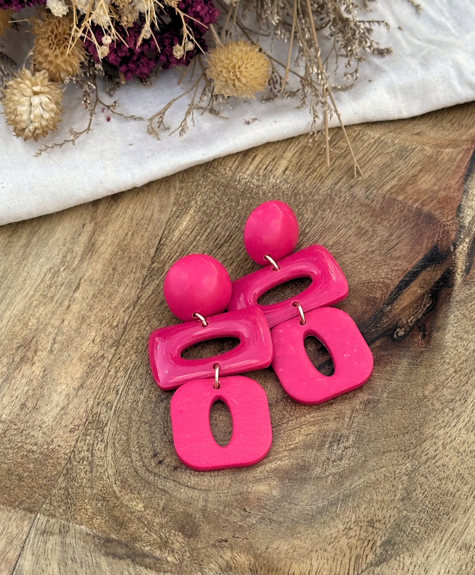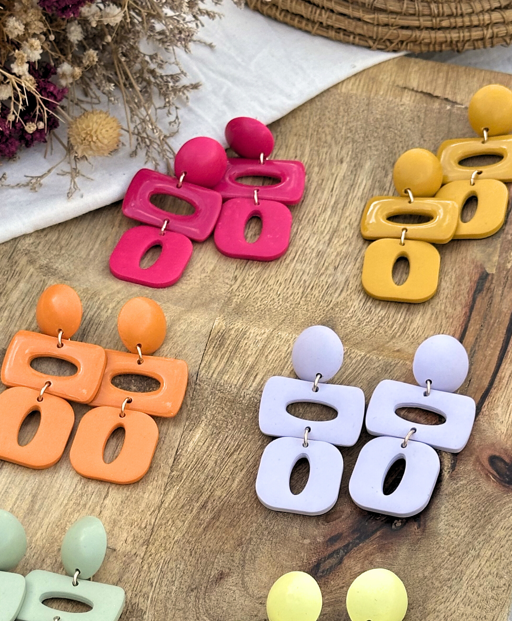 Chaque pièce est entièrement réalisée à la main en argile polymère dans notre atelier du Sud de la France. Après modelage, cuisson et étapes de finition, les bijoux sont assemblés avec des apprêts en Gold Filled 14K, matière durable et résistante pour des bijoux à porter au quotidien et toute la vie. Pour en savoir plus sur nos matières et notre processus de création consultez les pages « Notre atelier » et « Nos engagements ».